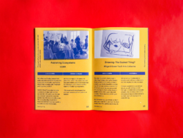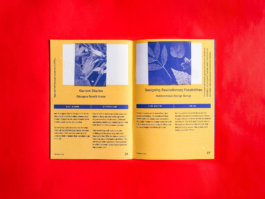 visual identity tap directly into the DIY practices of printing employed in the end of the 20th century by unions, clubs and collectives. The references include union banners, vintage protest posters, flyers and litho printed socialist pamphlets. The final visual for the poster was built by drawing each individual layer by hand before superposing them. In the programme, the images follow that logic, used as layers placed on top of a predefined frame. The booklet is designed with accessibility constraints in mind, using a yellow background instead of white to facilitate reading.