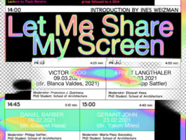 Poster advertising an online event centered around a series of interviews with important actors in the field of architectural research. The interviews were led on Zoom during lockdown by PHD students of the RCA School of Architecture.